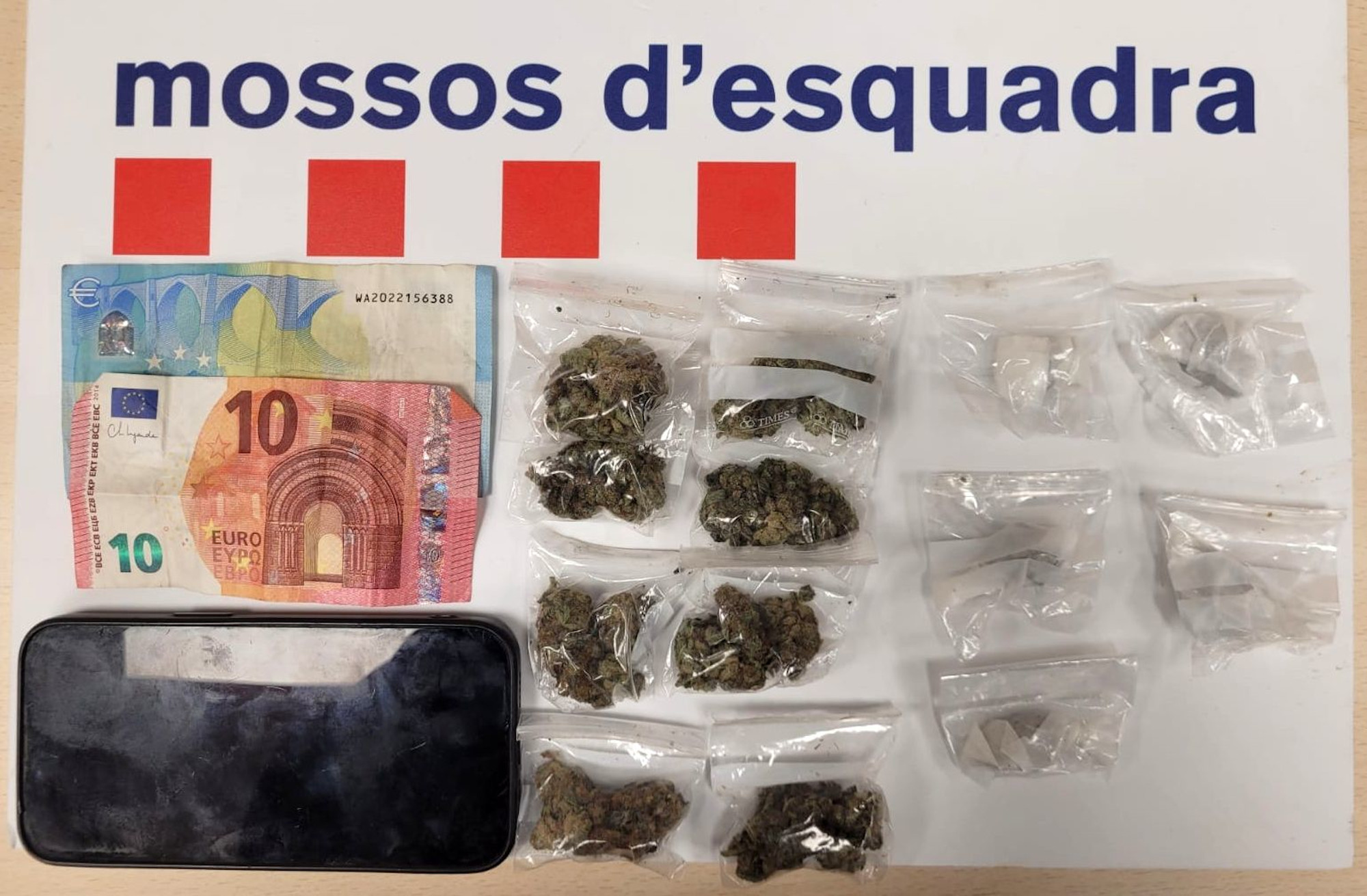Així mateix, duia dues bosses de plàstic que contenien set monodosis de marihuana i cinc d’haixix, i 30 euros. L’ocupant del vehicle era una dona de 37 anys, que va lliurar de manera voluntària la monodosi de marihuana que li havien lliurat. El total de marihuana intervinguda van ser 19,5 grans, amb un valor aproximat de 120 euros en el mercat il·lícit; i 13,2 grams d’haixix, valorats en uns 90 euros. L’arrestat va passar a disposició del jutjat de guàrdia de Reus aquest dimecres.