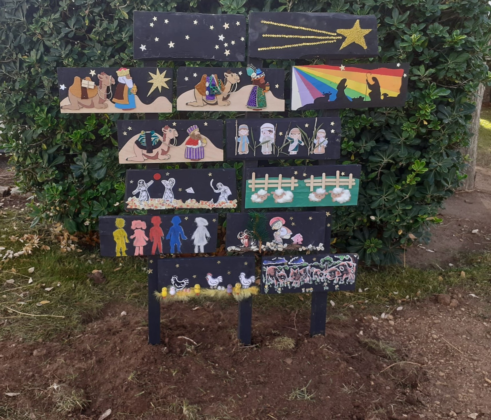 El pessebre, que s’ha instal·lat a l’exterior del centre, recrea les escenes principals del naixement amb un enfocament que promou la inclusió i la creativitat. Es tracta d’una iniciativa anual que transforma el pessebre en un espai de creació artística i compromís amb el medi ambient.