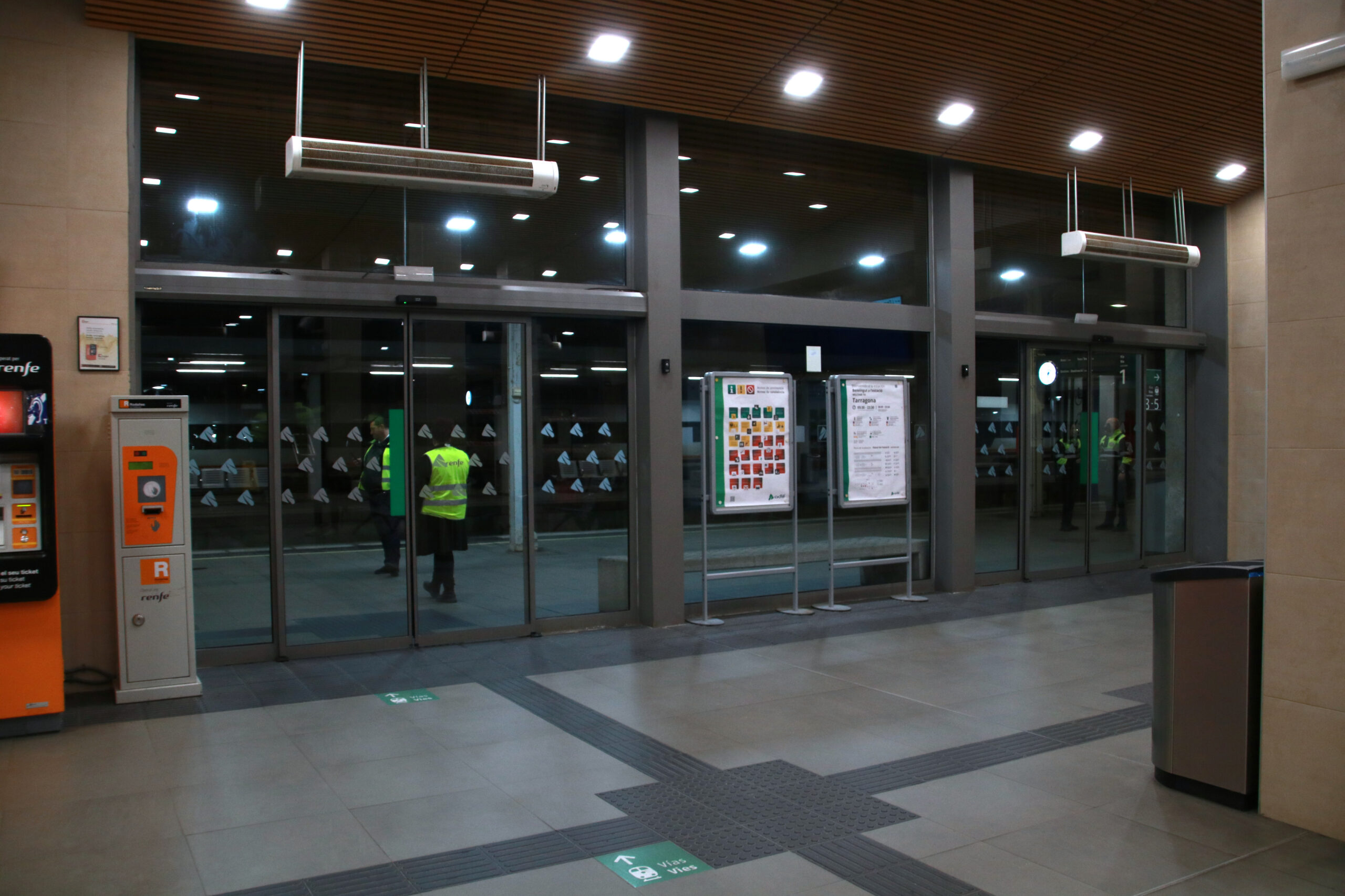 ACN Tarragona – Pocs usuaris de trens s’esperen al vestíbul de l’estació de trens de Tarragona aquest dijous al matí a l’espera que es reprengui el servei ferroviari o bé que algun familiar els reculli per tornar cap a casa. Les andanes estan buides de viatgers, només hi ha treballadors de seguretat i de Renfe, i a les vies hi ha aturats cinc combois. Diversos informadors expliquen els passatgers que arriben a l’estació que no hi ha servei. La Marga, una viatgera de l’R-16, procedent de Tortosa, que ha agafat aquest tren a l’Ametlla de Mar, està indignada perquè no els han informat fins a Vila-seca que el regional acabaria el trajecte a Tarragona i també perquè no els ha ofert cap servei de transport alternatiu. “És una merda, és una incertesa”, ha dit.