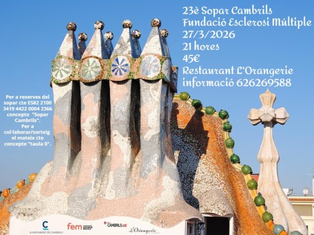 El proper 27 de març de 2026, la Fundació Esclerosi Múltiple celebrarà la seva 23a edició del sopar solidari al Restaurant L’Orangerie a partir de les 21 hores. Fins al moment, ja s’han registrat 260 persones per a l’esdeveniment, els beneficis del qual seran destinats a finançar serveis i tractaments al Centre Neuro-rehabilitador Mas Sabater a Reus.