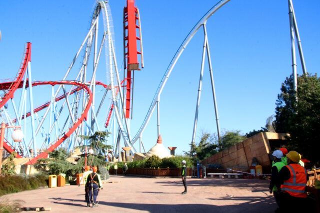 En l’actuació hi participen vora una cinquantena de persones i s’allargarà unes setmanes. Els dos elements que es canviaran són el ‘vertical loop’ i el ‘cobra roll’. El primer s’ha començat a desmuntar aquest dijous, en una operació en la qual hi ha intervingut una grua de grans dimensions per moure la part superior del ‘looping’, que pesa unes 12 tones.